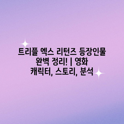 영화 ‘트리플 엑스 리턴즈’에서는 다양한 캐릭터들이 등장하여 이야기의 중심을 이룹니다. 각 캐릭터들은 고유의 특성과 배경을 갖고 있으며, 그 역할은 스토리 전개에 중요한 영향을 미칩니다. 아래 표에서는 주요 캐릭터들의 스토리와 역할을 자세히 분석하여 설명하겠습니다.