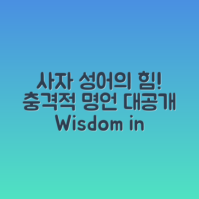 그렇게 작은 습관으로 시작된 변화가 결국 큰 결과를 가져왔어요. 여러분도 사자 성어 명언의 힘으로 어려운 순간을 이겨내길 바라요!