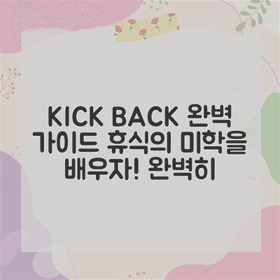 이 다섯 가지 기법을 활용하여 더욱 효과적으로 KICK BACK하며, 일상에서의 스트레스를 해소하고 삶의 질을 높여보세요.